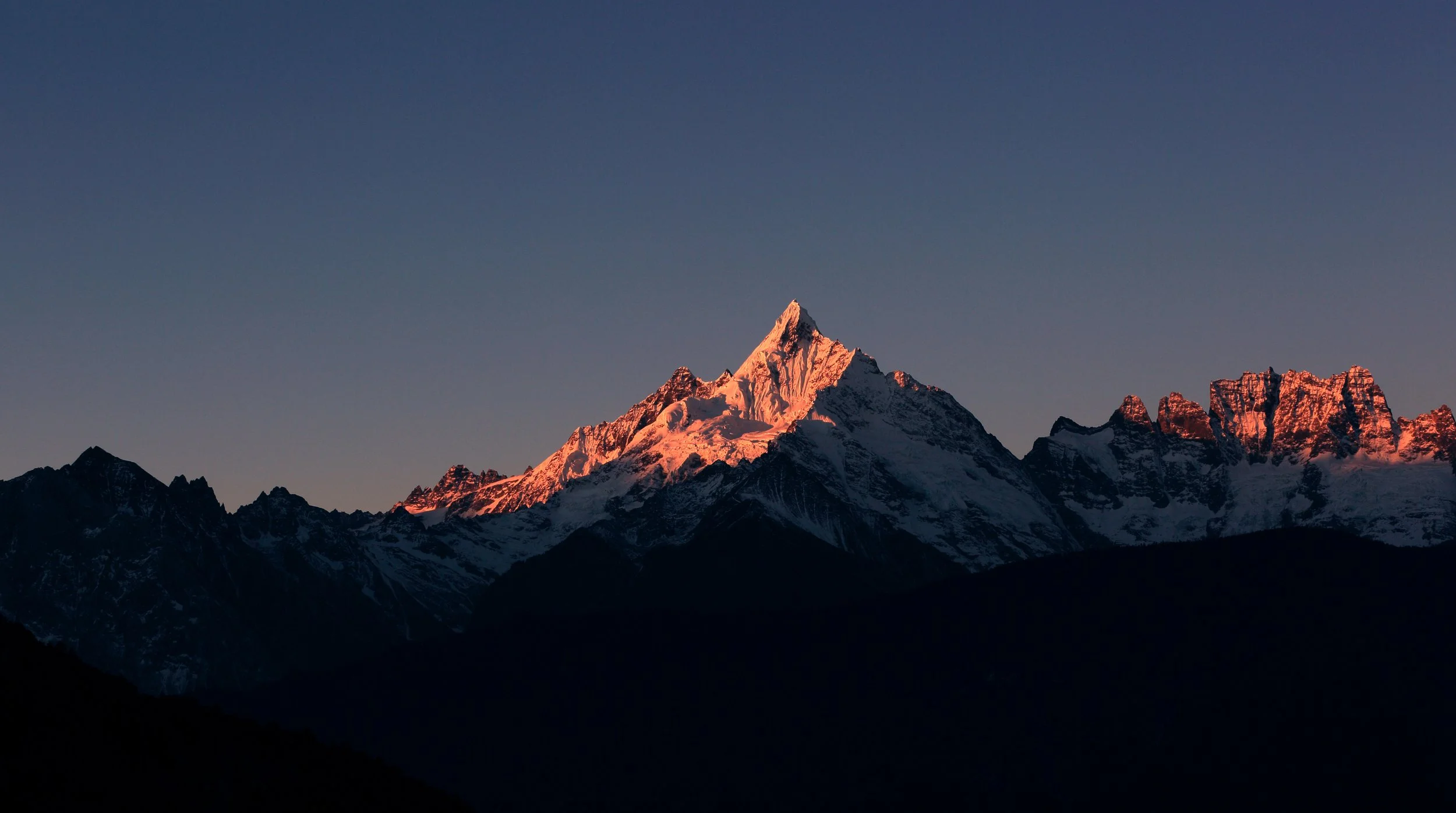 Meili Snow Mountain, located in Deqin County, Diqing Prefecture, Yunnan, is one of the Eight Sacred Mountains of Tibetan Buddhism. It consists of 13 snow peaks above 6,000 meters. The main peak, Kawagarbo (6,740 m), is the highest in Yunnan and remains unclimbed. With its majestic scenery, the mountain is renowned for the spectacular sunrise view known as the “Golden Mountain”.